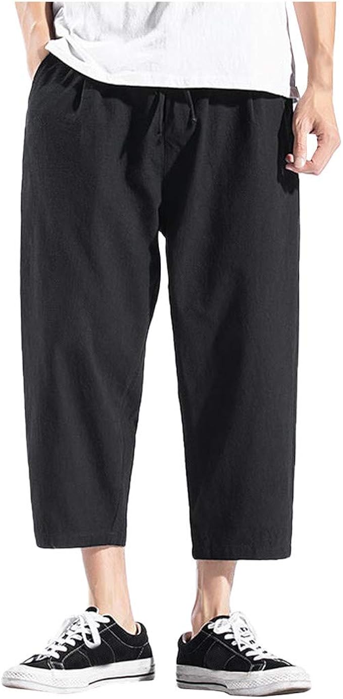 Kalorywee Herren Herren Freizeit Hosen Shorts Sommer Neu Einfarbig Knochellange Hose Regular Tunnelzug Hip Hop Kung Fu Retro Baumwolle Und Leinen Buquem Atmungsaktiv Baggy Amazon De Bekleidung