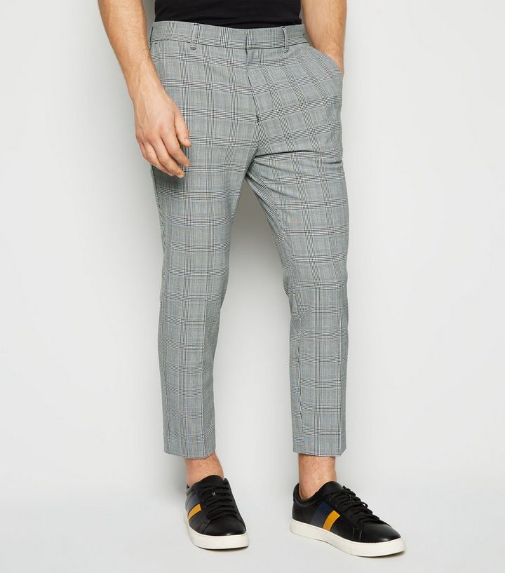 Knochellange Karierte Skinny Hose In Hellgrau New Look