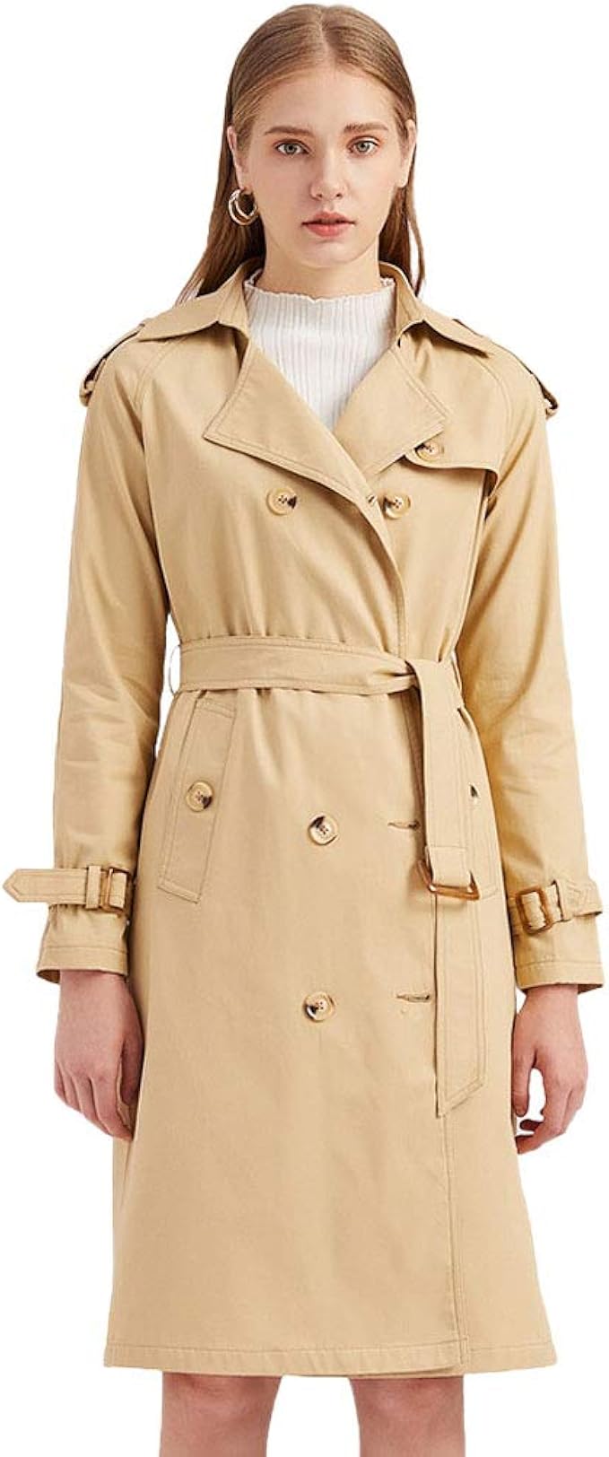 Kaiyei Damen Doppelreiher Trenchcoat Lang Langarm Ansteckkragen Tailliert Sanft Slim Baumwolle Fruhling Herbst Trench Jacke Mantel Mit Schulterklappen Und Gurtel Amazon De Bekleidung