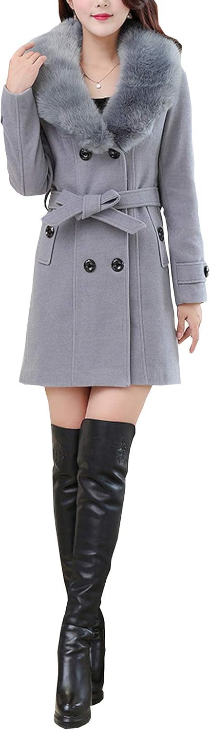 Damen Wintermantel Wollmantel Mit Faux Pelz Kragen Parka Herbstjacke Elegant Zweireihiger Trenchcoat Lang Mantel Ubergangsjacke Dufflecoat Outwear Mit Gurtel