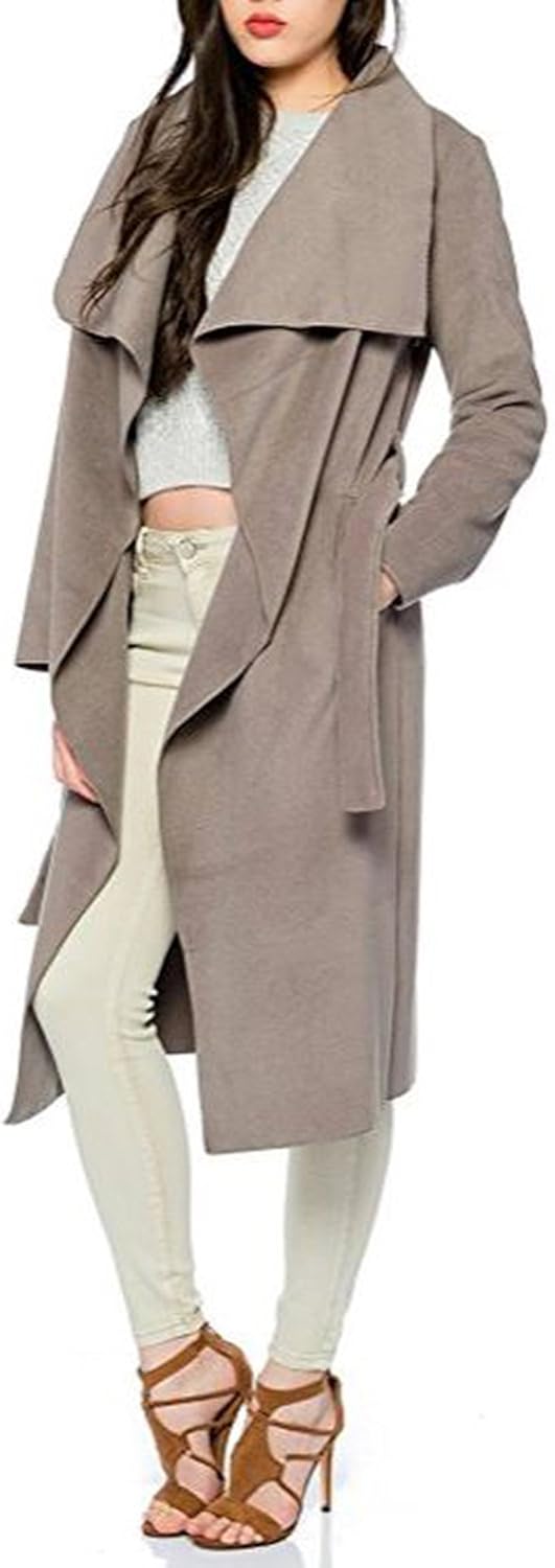Xxie Damen Mantel Winter Lang Cardigan Trenchcoat Open Front Mit Gurtel Langarm Parka Jacke Fsnf Org