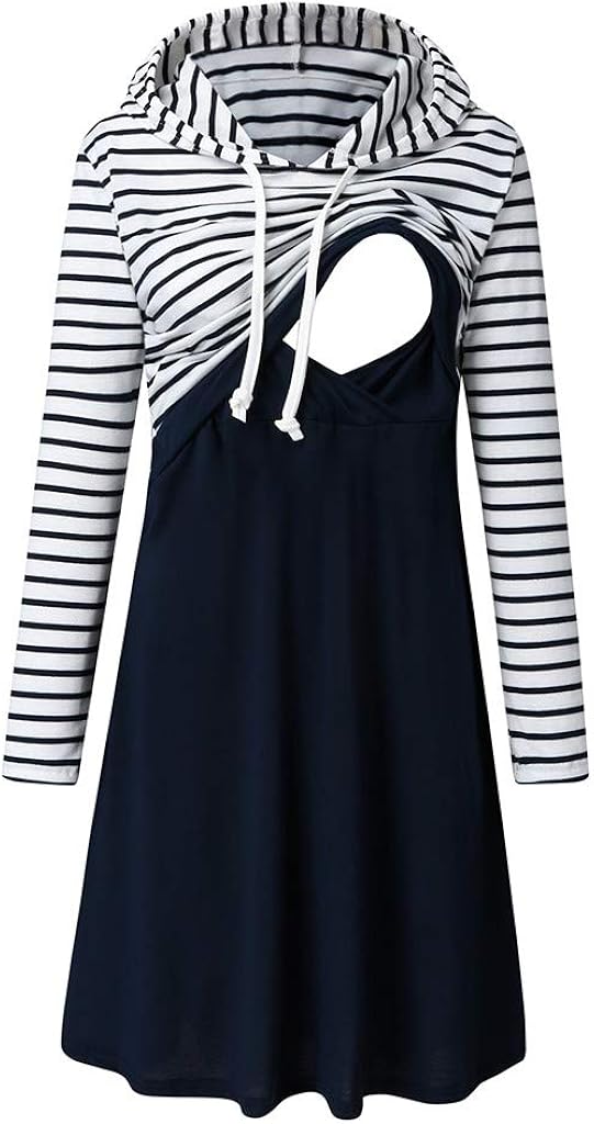 Ucoolcc Damen Umstandsmode Mit Kapuze Schwangerschaft Langarm Kleid Mutterschaft Gestreiften Stillkleid Umstandskleidung Umstandskleid