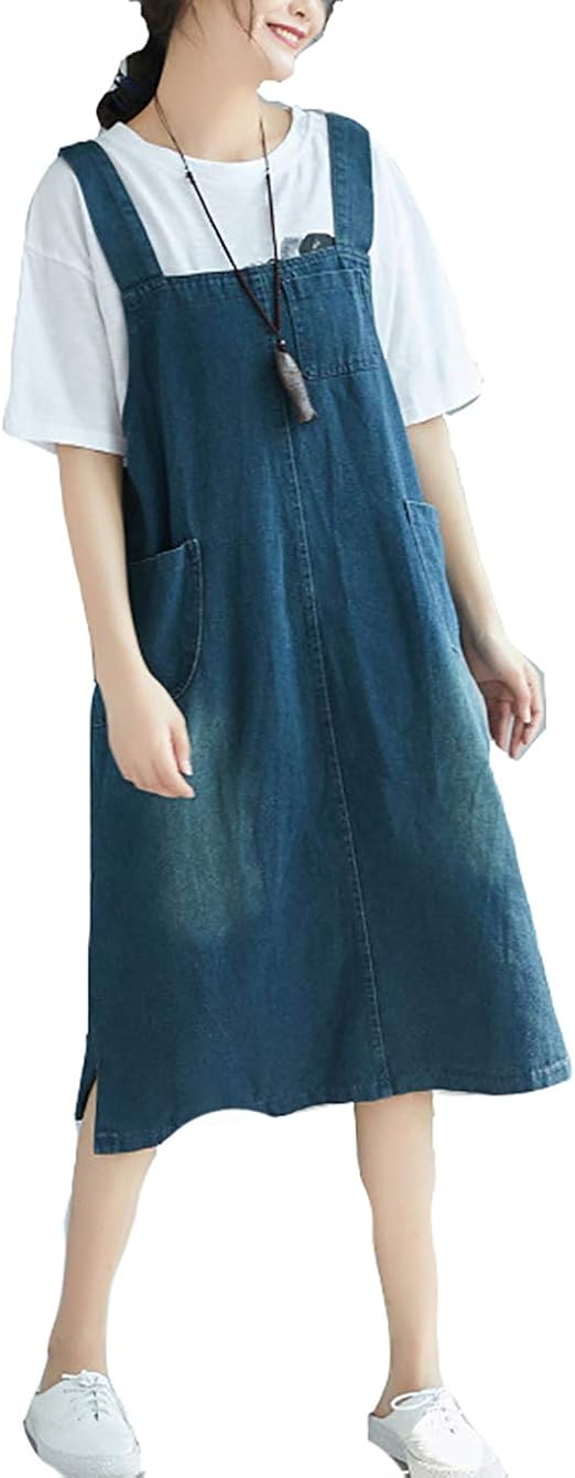 Damen Vintage Retro Lose Latzkleid Elegante Midi Jeanskleider Jeansrock Amazon De Bekleidung