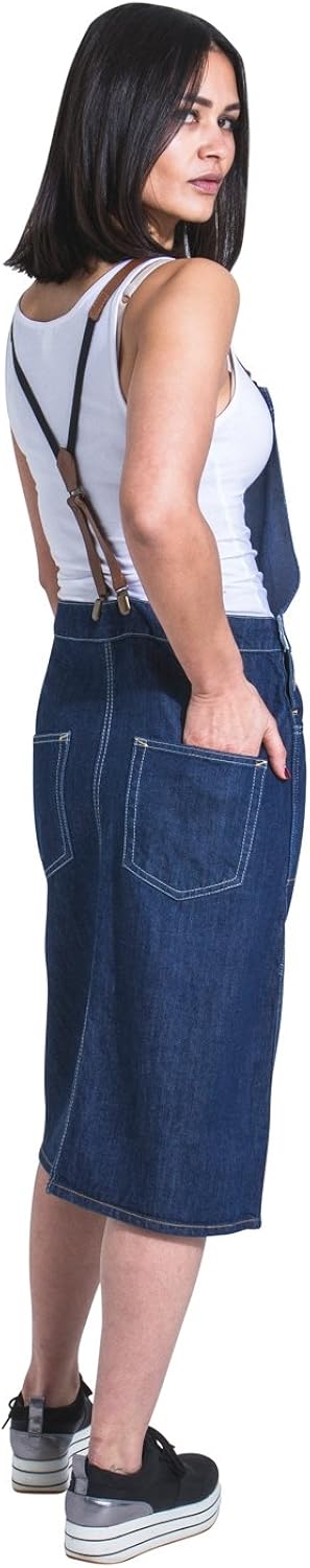Uskees Midi Latzhosenkleid Mit Tragern Indigoblau Denim Damen Latzkleid Modisch Skylarbraces Amazon De Bekleidung