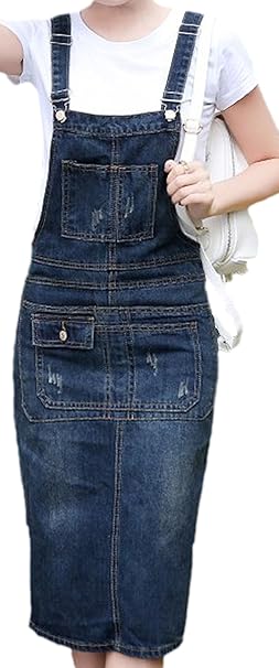 Damen Lassig Denim Latz Kleid Kratzen Stil Jeansskirt Jeansrock Minirock Latzkleid Latzrock Midi Rock Loose Hosentragerkleid Amazon De Bekleidung