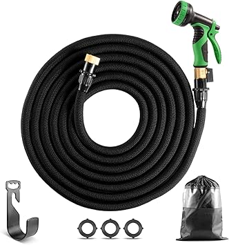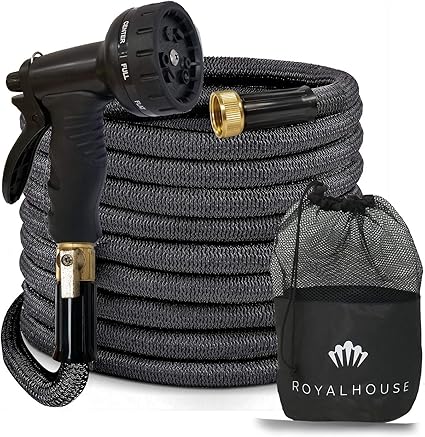 Amazon Com Royalhouse 100 Ft Black Expandable Garden Hose Water Hose With 9 Function High Pressure Spray Nozzle Heavy Duty Flexible Hose 3 4 Solid Brass Fittings Leak Proof Design Garden Outdoor