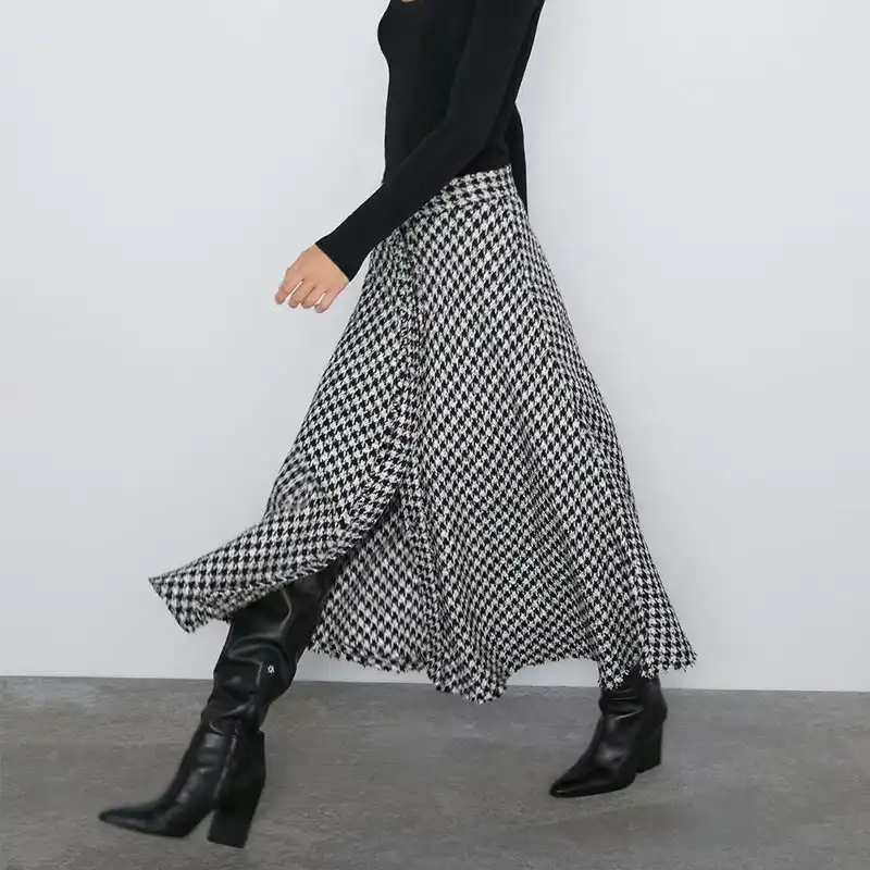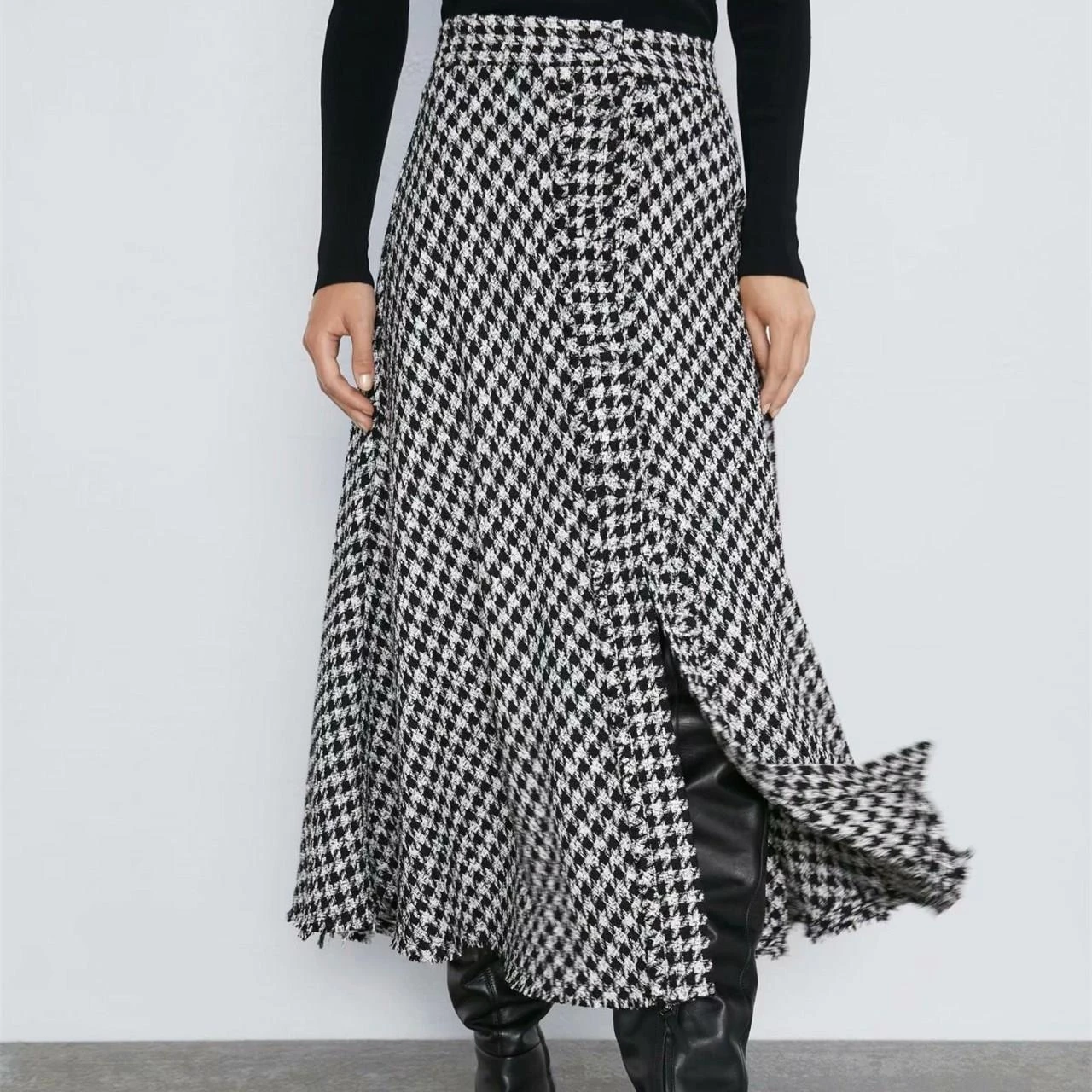 Elegant Tweed Houndstooth High Waist A Line Midi Skirt Women 19 Vintage Split Skirt Long Skirts Skirts Aliexpress