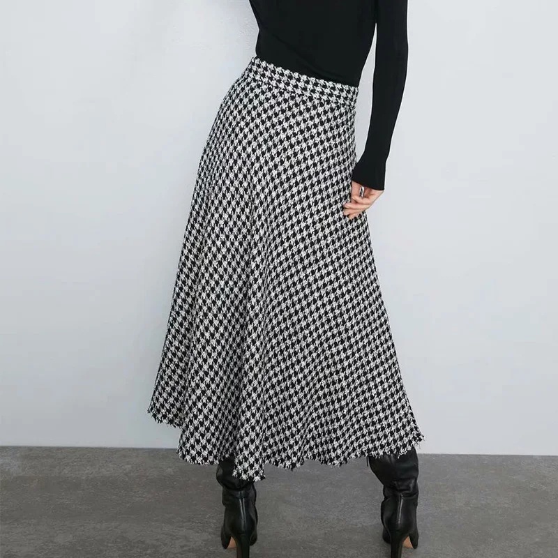 Check Tweed England Vintage Women Skirt High Waist A Line Midi Skirts Female Autumn Winter Ladies Fashion Korean Bottoms Skirts Aliexpress