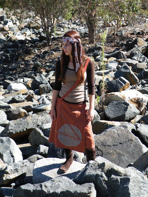 Burnt Orange Slub Denim With Tweed Look Detail Midi Wrap Skirt Etsy