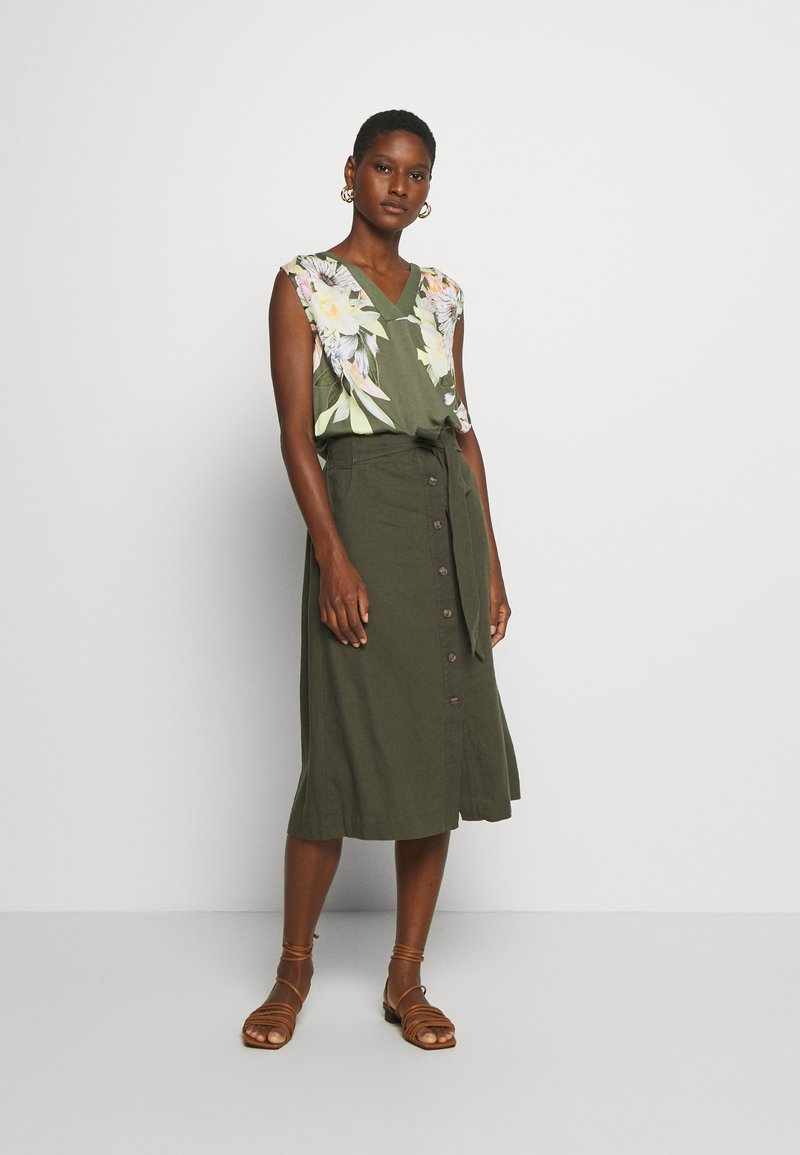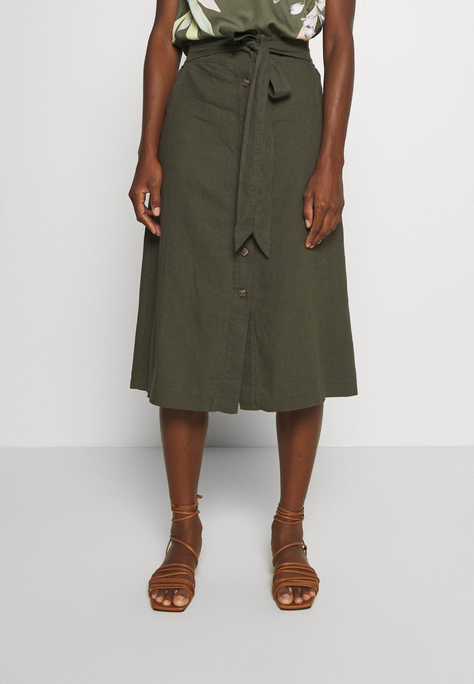 Gap V Tie Front Midi Skirt A Linien Rock Baby Tweed Khaki Zalando De