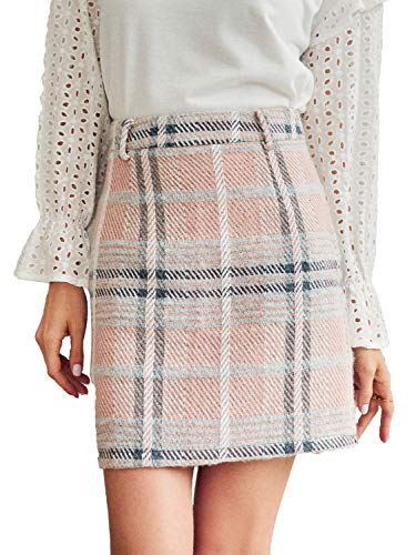 Xinxinfeier Damenrock Removable Damen Elegant Grid Formal Midi Bleistift Buro Rocke Mittellange Kleid Hohe Taille Bandage Rock Tweed Shrugs Patch Color Apricot Size Xs Amazon De Kuche Haushalt