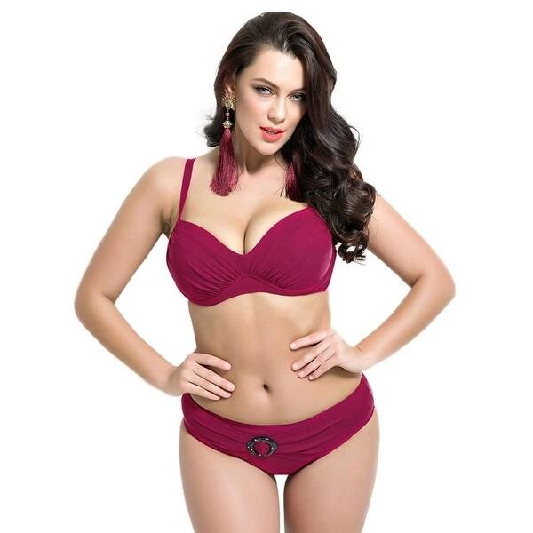 Push Up Bikini 17 Women Plus Size Swimsuit Solid Biquini Sets Red Bathing Suits Big Cup Swimwear Ruched Beachwear Full Bust Overstock