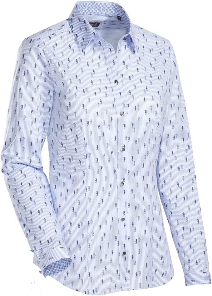 Jacques Britt Damen Bluse Baumwolle Blusenshirt Gemustert Blau 44 Amazon De Bekleidung