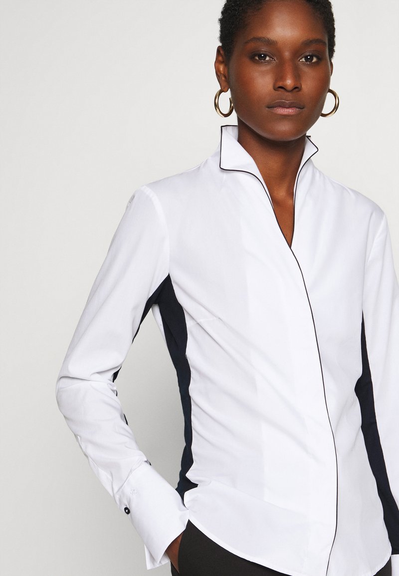 Extraglatt Bluse Kelchkragen Weiss Walbusch