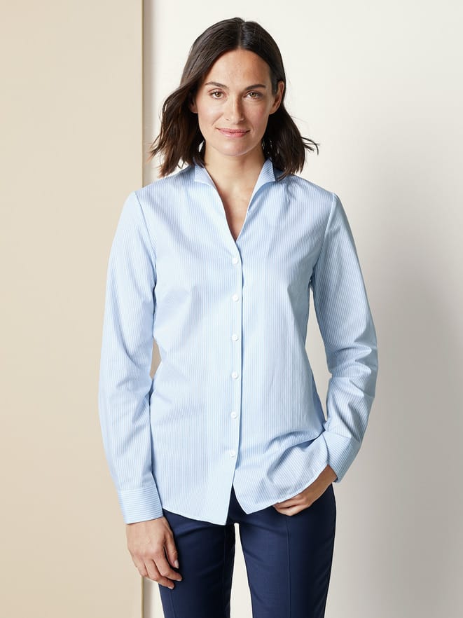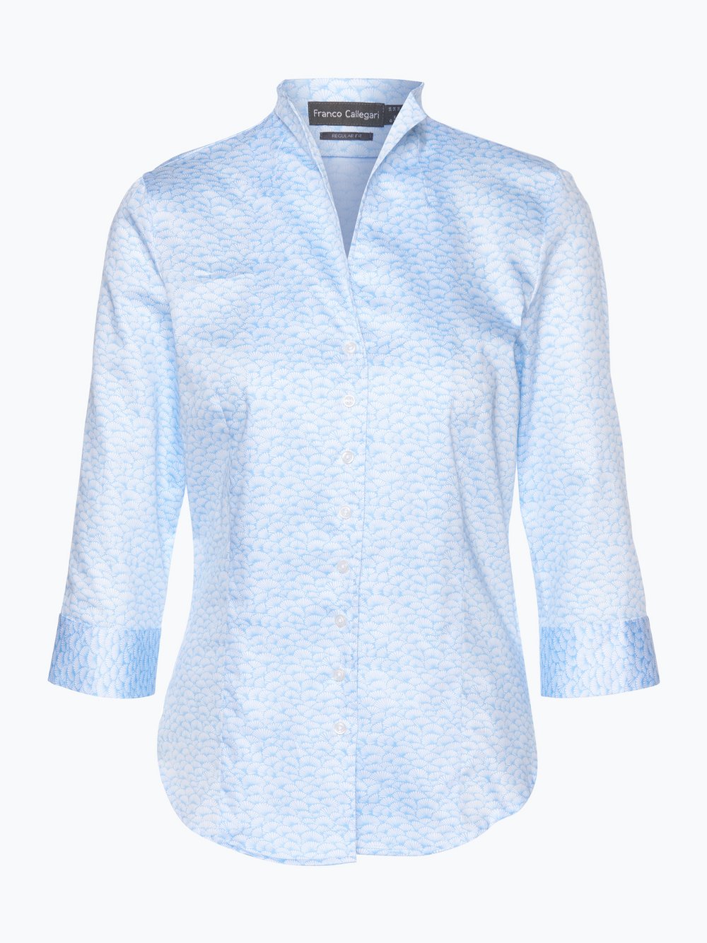 Extraglatt Bluse Kelchkragen Blau Walbusch