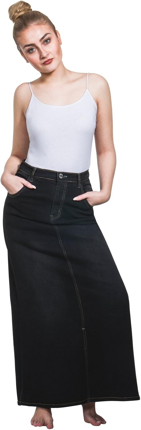 Matilda Langer Jeansrock Dark Wash Maxi Rock Damen Mode Eu 36 50 Matildadw Amazon De Bekleidung