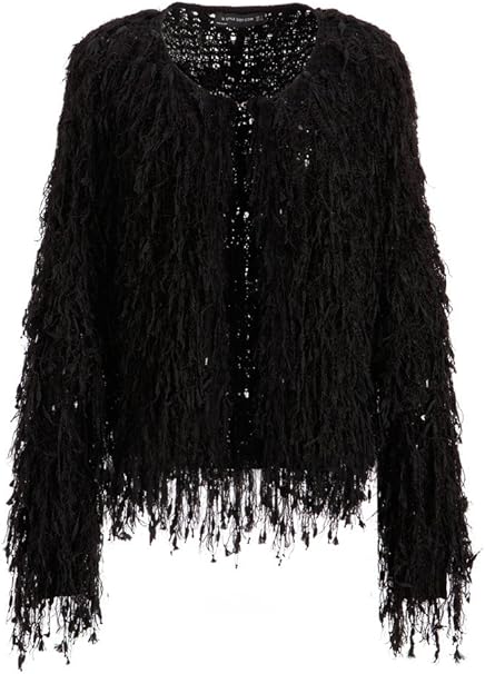 Pretty Attitude Schwarze Wuschelig Weiche Damen Strickjacke Cardigan Amazon De Bekleidung