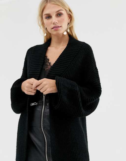 Asos Design Maxi Cardigan In Fluffy Yarn Black Modesens