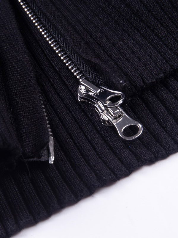 Black Sweater Jacket Zip Up Cardigan Long Sleeve Turndown Collar Cropped Knitwear Milanoo Com