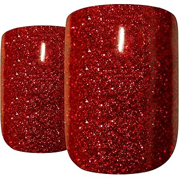 Falsche Nagel Bling Art Rot Silber 24 Squoval Kunstnagel Mittel Tipps Mit Kleber Amazon De Beauty