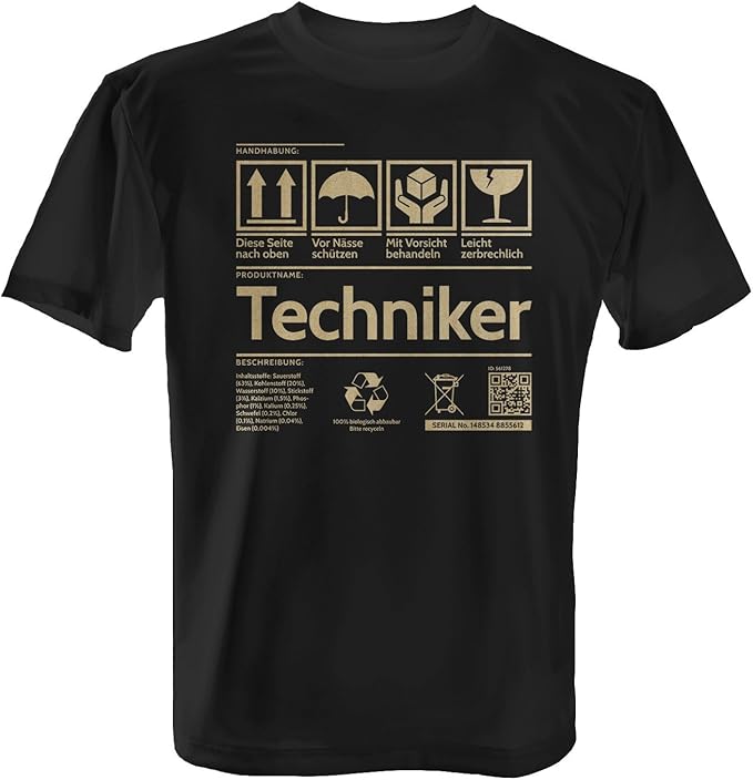 Fashionalarm Herren T Shirt Etikett Techniker Fun Shirt Fragile Versandetikett Geschenk Idee Technik Ingenieur Betriebstechniker Beruf Amazon De Bekleidung