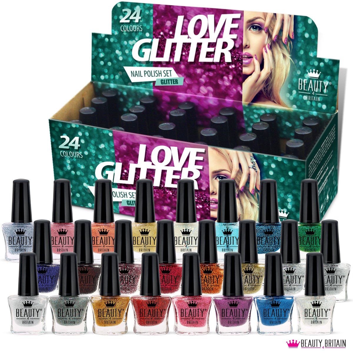 24 Glitzer Nagellack Set 24 Verschiedenen Farben 5 Ml Perfekte Geschenk Amazon De Beauty