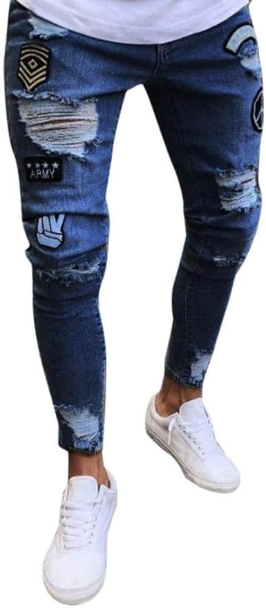 Vawal Herren Mode Stretch Skinny Zerrissene Jeans Tapered Leg Slim Fit Loch Denim Bleistift Hosen S Blau Jetzt Unschlagbar Gunstig Shopping24 De