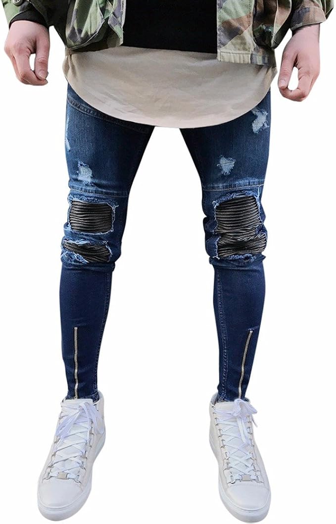 Greatestpak Pants Slim Fit Herren Enge Zipper Hosen Denim Hosen Manner Biker Denim Jeans Skinny Hosen Distressed Rip Jeans Manner Denim Jeans Zerrissene Jeans