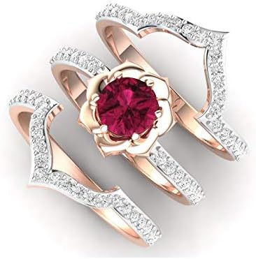 Rose Gold Bridal Set Ring Three Stone Engagement Ring Set Matching Band Promise Ring Wedding Ring Set Rose Gold Diamo Ring Verlobung Verlobungsring Ehering
