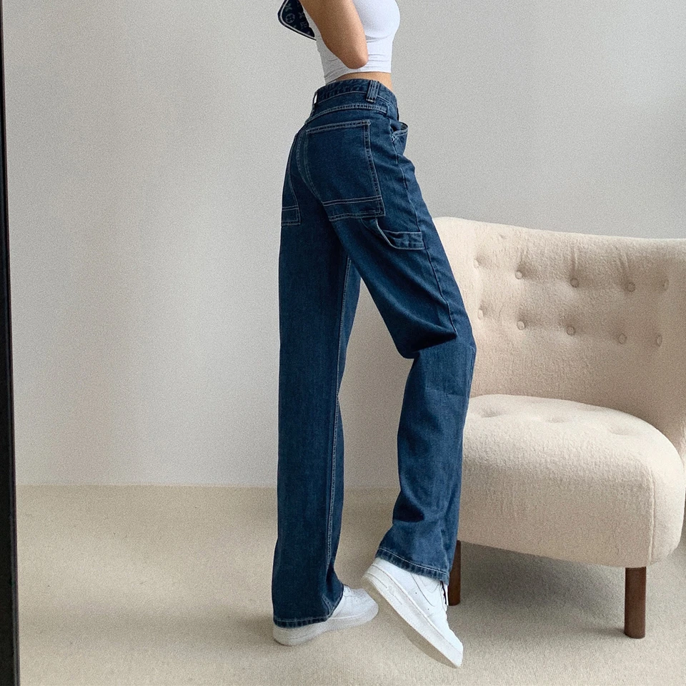 Baggy Jeans For Women Loose High Waist Boyfriend Mom Jeans Big Pockets Black Straight Denim Pants Fashion Hot Sale Jeans Aliexpress