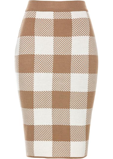 Eleganter Strickrock Mit Elastikbund Wollweiss Camel Kariert
