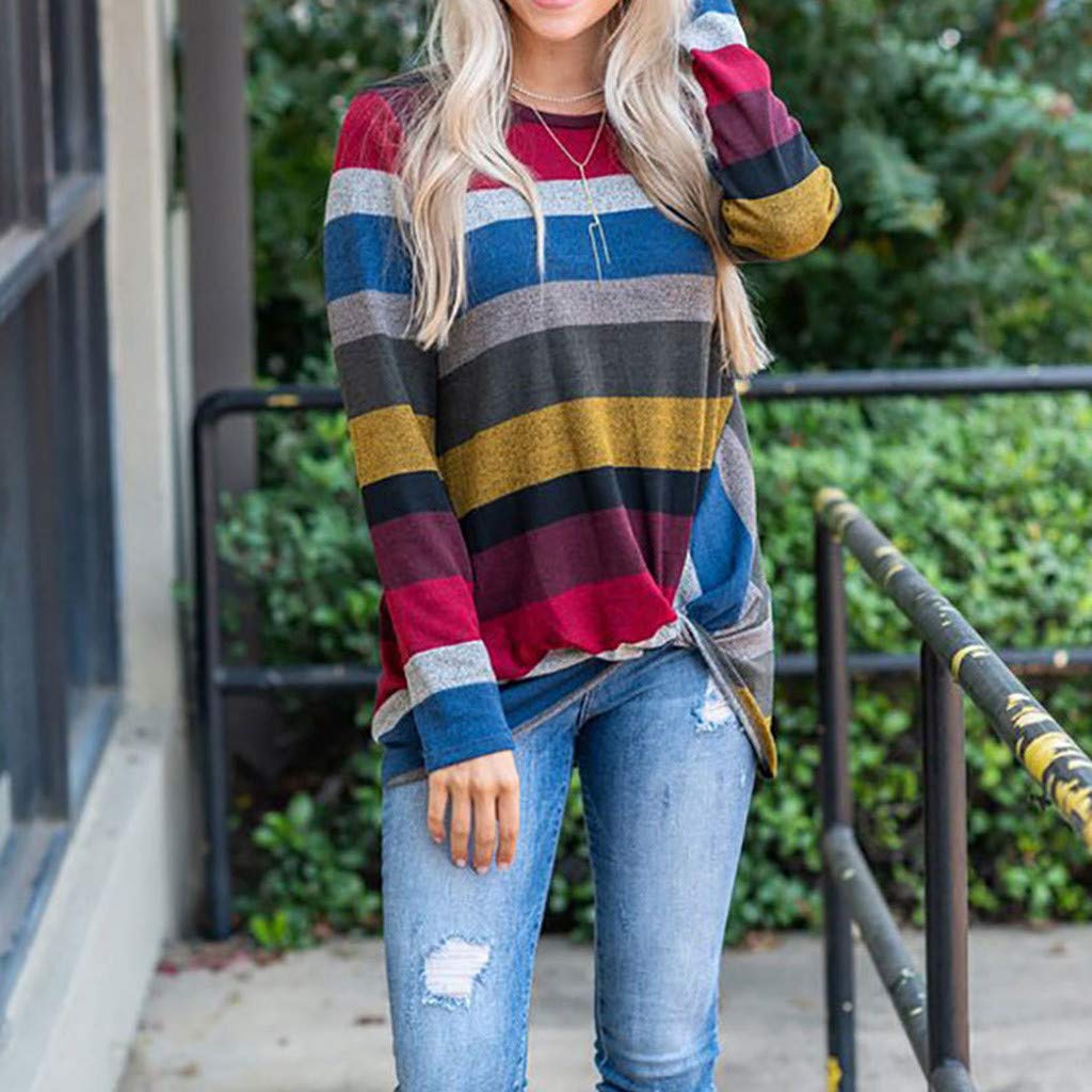 Modetalente Pullover Damen Gestreifter Lassig Langarm Rundhals Pullover Tops Lassig Damen Pullover Gestreifter Pullover Rundhals Modetalente