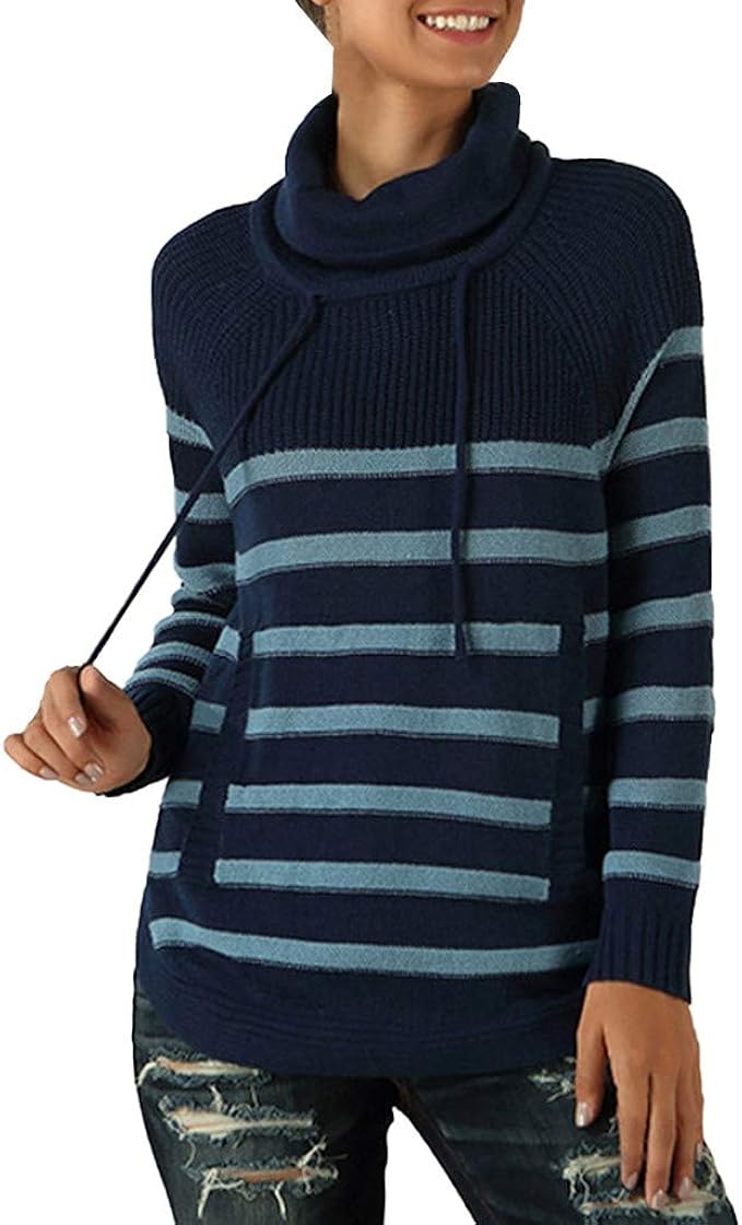 Pullover Strickjacken Damen Pulli Pullover Elegant Kapuzenpullover Hoodie Casual Sweatshirt Rollkragen Buntes Gestreiftes Loose Bekleidung Luxdental Si