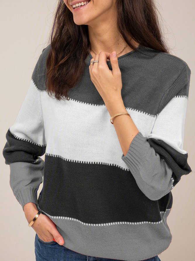 Yosicil Damen Pullover Streifen Herbst Winter Strick Pulli Gestreift Bunt Patchwork Strickpullover Langarm Casual Rundhals Sweatshirt Fit Frauen Oberteile Tops Amazon De Bekleidung