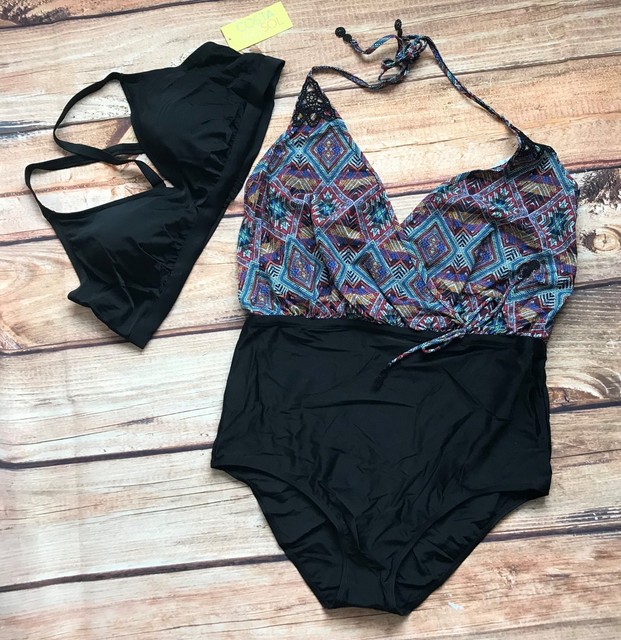 18 Women Plus Size Bikini Setschwimmen Anzug Frauen Bikinis Hang High Neck Halter Bademode Badeanzug Patch Geometric Patterns Patches Patches Patches Womenpatch B Aliexpress