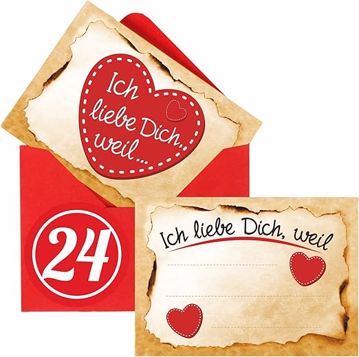 Adventino Adventskalender Mit 24 Karten Ich Liebe Dich Weil In 24 Roten Umschlagen Fur Manner Frauen Paare Amazon De Kuche Haushalt