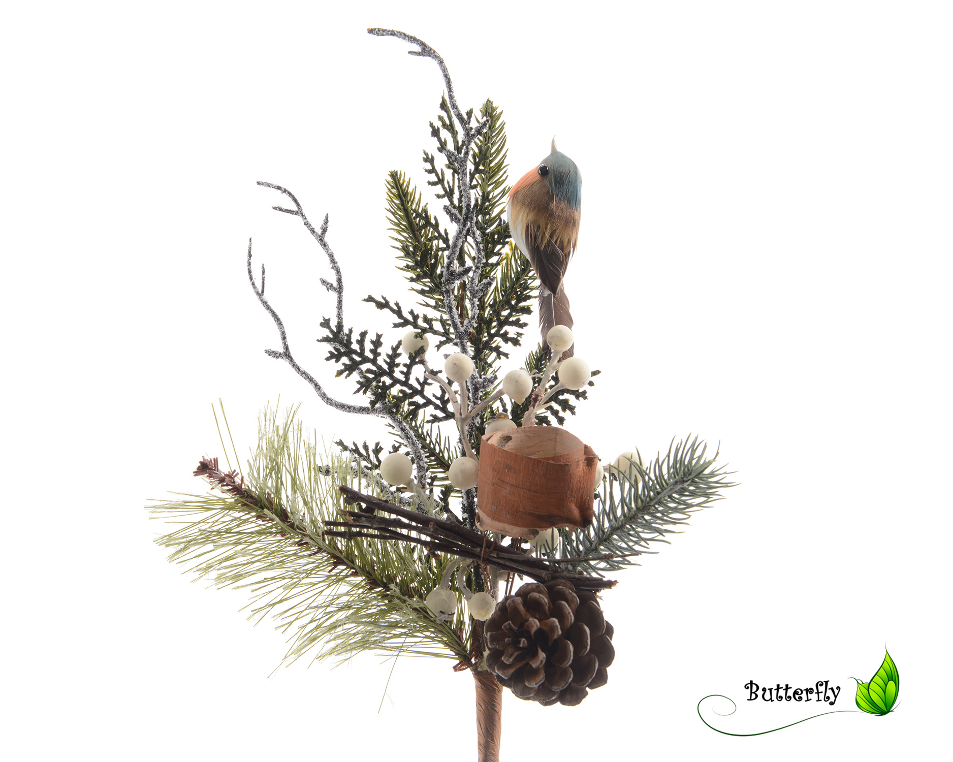 Tannenzweige Kunstlich Mit Vogel Und Schnee 34cm Kreativmarkt Butterfly