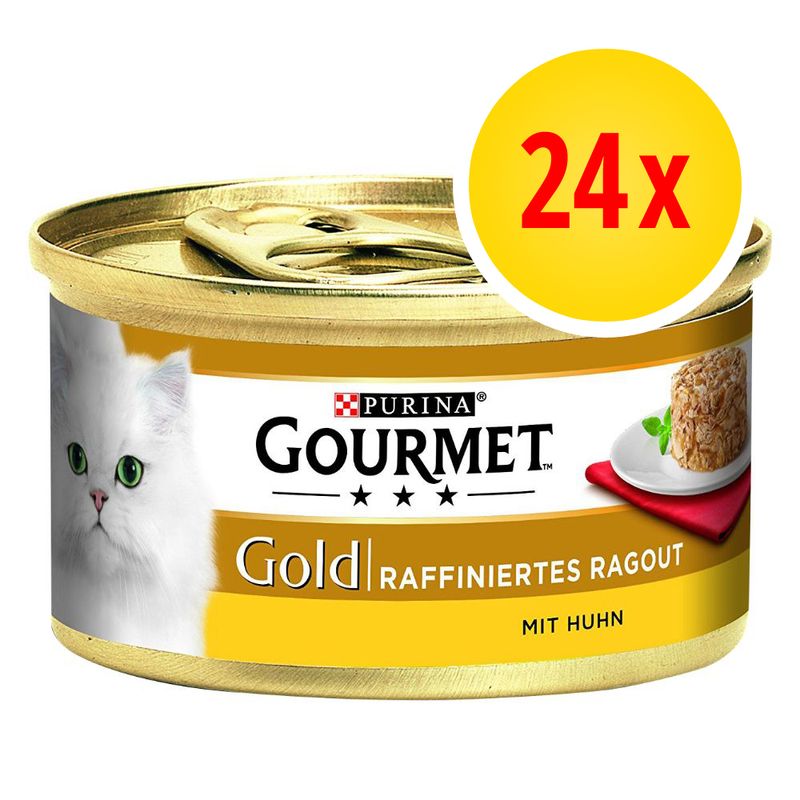 Gourmet Gold Nassfutter online kaufen Jetzt vergleichen und den besten Preis für alle Sorten Katzenfutter auswählen Dazu aktuelle Gutscheine und Aktionen entdecken auf wwwKatzenfutterOnlinecom, dem OnlinePreisvergleichsportal für Katzenfutter Nassfutter, Trockenfutter und Leckerlis!. Mit dem Gourmet Gold Feine Pastete Big Pack können Sie ihre Samtpfote jeden mit verschiedene Kreationen und Geschmacksrichtungen verwöhnen Alle GOURMET Gold Kreationen sind in einer 85g Dose erhältlich, um den Geschmack jeder Sorte zu bewahren 24x85g (8x mit Kalb, 8x mit Rind, 8x mit Lamm, 8x mit Kanichen. PURINA GOURMET Gold Délicatesse en Sauce Katzenfutter nass, mit Rind und Huhn, 12er Pack (12 x 85g) 4,7 von 5 Sternen 5 4, € (4,79 € / 1 kg).