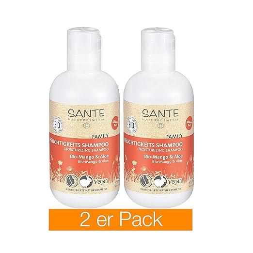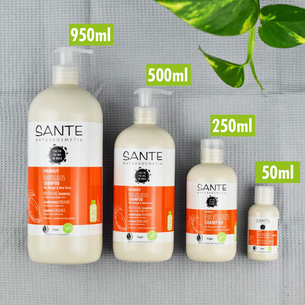 SANTE Naturkosmetik Feuchtigkeits Shampoo BioMango & Aloe Vera, Vorteilsgröße mit Pumpspender, Spendet Feuchtigkeit, Glänzendes Haar, Natürliche Haarpflege für trockenes Haar, Vegan, 950ml SANTE Naturkosmetik Family Glanz Shampoo BioBirkenblatt & Pflanzliches Protein, vegan, für glänzendes Haar vom Ansatz bis in die Spitzen, 0ml. Shampoo ohne Silikone gehört in der Welt der HaarpflegeShampoos zu den großen Trends unter Gesundheitsbewussten Es pflegt die Haare nicht nur auf natürliche Art und Weise, sondern schützt auch die Umwelt – sie zählen nämlich zu denjenigen Substanzen im Shampoo, die schwer abbaubar sind;. Das Sante Family Feuchtigkeits Shampoo mit BioMango ist ideal für trockenes Haar Es spendet intensive Feuchtigkeit Die natürlich wirksame und milde.