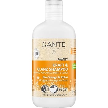 Sante Family Strength and Shine Shampoo with organic orange and coconut For brittle hair The natural mild care formula makes the hair look more vital A delicate foam is created during shampooing With a purely natural, fruity orange scent.