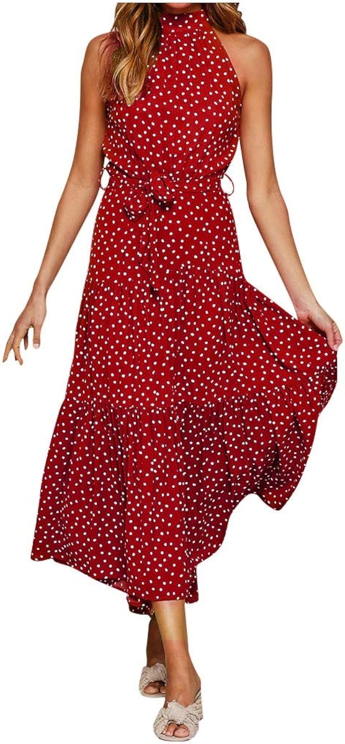 Hffan Abiballkleider Ballkleid Abendkleid Lang Neckholder Chiffon Polka Dot Armellos Abschlusskleid Amazon De Bekleidung