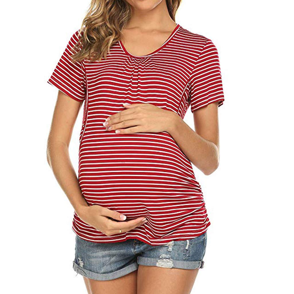 Supersu Umstandskleidung Damen Kurzarm Still Striped Doppelschicht Baby Locker Stillshirts Fur Schwangerschaft Mama Umstandsmode Umstands Umstandstop Basic Stillzeit Stilltops Blusen Tuniken Baby