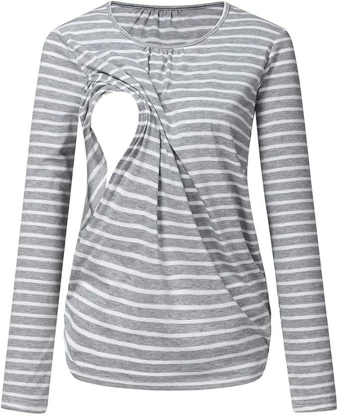 Ashui Damen Stillshirt Umstandsmode Stilltop Umstandsshirt Umstandsbluse Maternity Shirt Patchwork T Shirt Lassige Sweatshirts Damen Schwangere Frauen Stillen Streifen Langarm Bluse Tops Shirt Amazon De Bekleidung