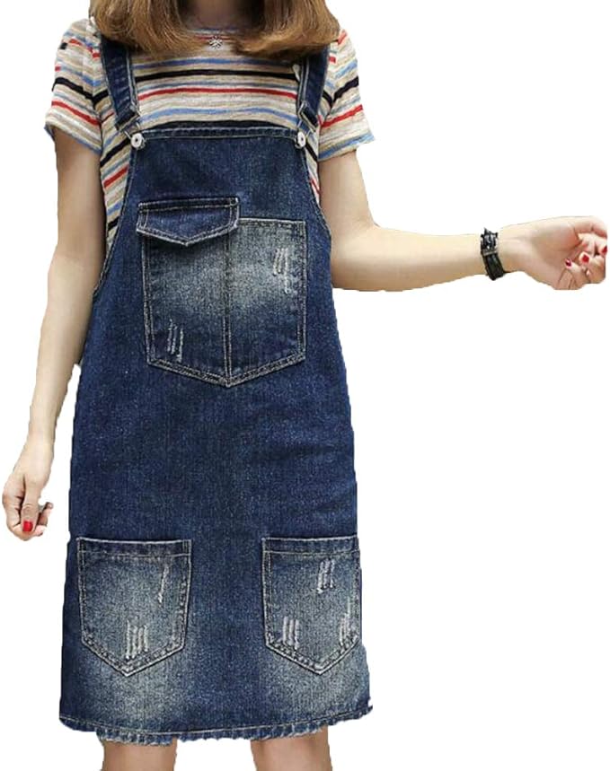 Anna Kaci Women S Casual Raw Edge Hem Denim Scratch Style Denim Skirt Mini Skirt Adjustable Straps Dungaree Skirt Amazon De Bekleidung