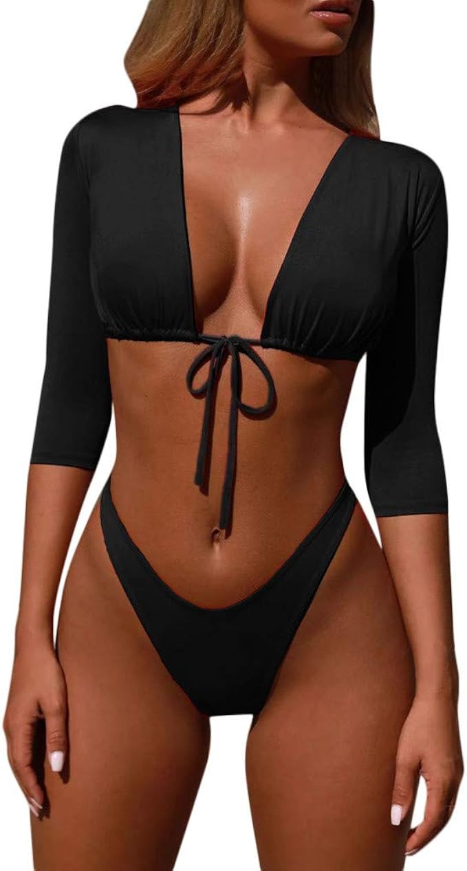 Longra Damen Bikini Sets Bademode Beachwear Bikini Push Up Bikinioberteil Mit Bikinihose Und 3 4 Armel Bikini Bademode Badeanzug Fur Damen Amazon De Bekleidung