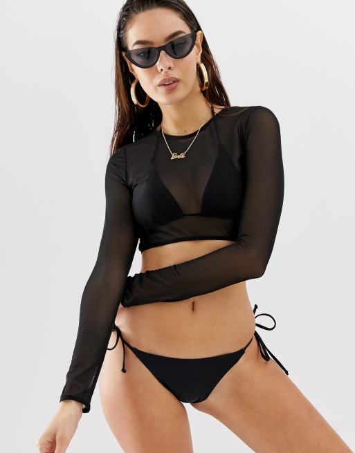 Asos Design Langarmliges Schwarzes Bikini Oberteil Aus Netzstoff Asos