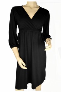 Tcm Tchibo Damen Kleid Wickeloptik Knielang 3 4 Armel Viskose Stretch Schwarz Ebay