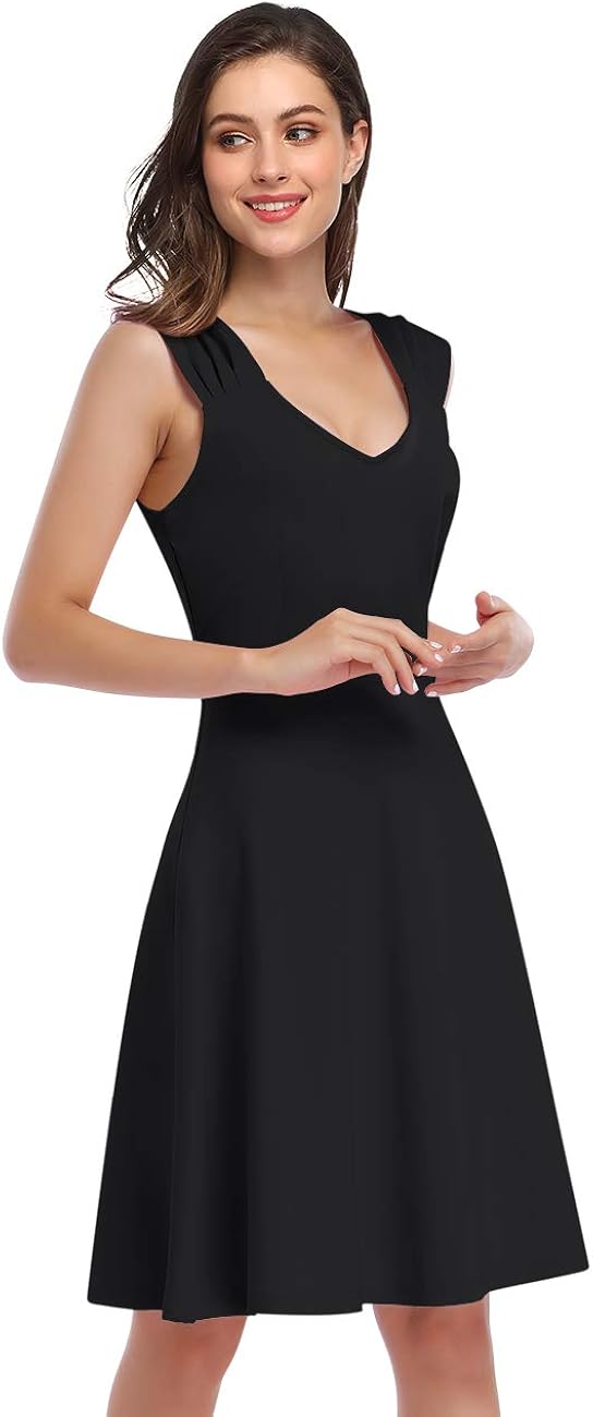 Kojooin Damen Kleider Vintage V Ausschnitt Cocktailkleid Armellos Knielang Retro Faltenrock Verpackung Mehrweg