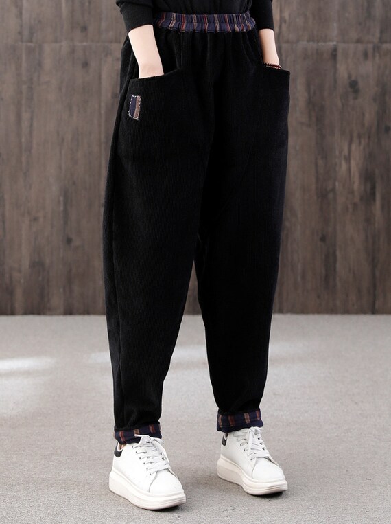 Elastic High Waist Corduroy Women S Harem Pants Large Etsy