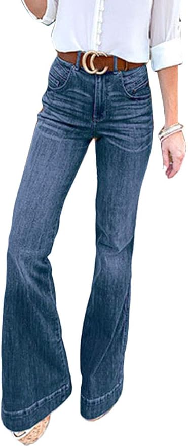 Orandesigne Damen Jeans Elegant Stretch Skinny Schlaghose Jeanshose Bootcut Hose Hoher Bund Weites Bein Retro Stil Denim Pants Amazon De Bekleidung